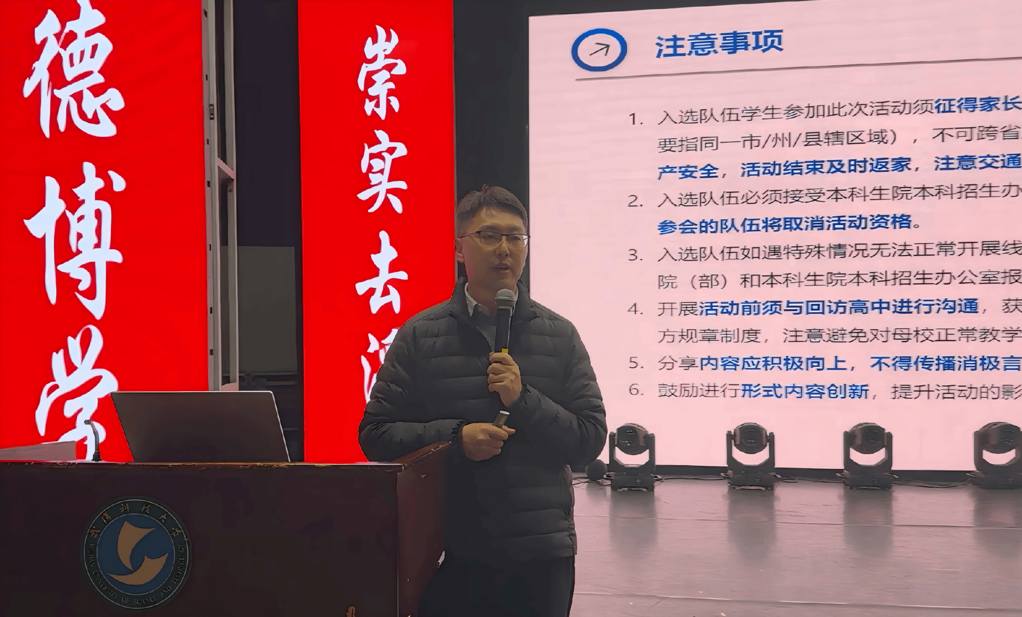 武科大网讯(通讯员孙晋文 摄影杨天波 许雯雯 赵文博)12月27日下午,2026年科大学子“回访高中母校·分享大学生活”活动培训会于黄家湖校区沁湖礼堂顺利召开。本次培训会旨在通过系统赋能,帮助宣讲志愿者精准掌握学校概况、招生政策及宣讲技巧,为寒假返母校宣传活动筑牢基础。武汉科技大学本科生院副院长、本科招生办公室主任朱明,升学就业在线总编辑兼研究院院长程亚,本科招生办公室老师张彭朋及各宣讲团队代表参加了本次活动。
