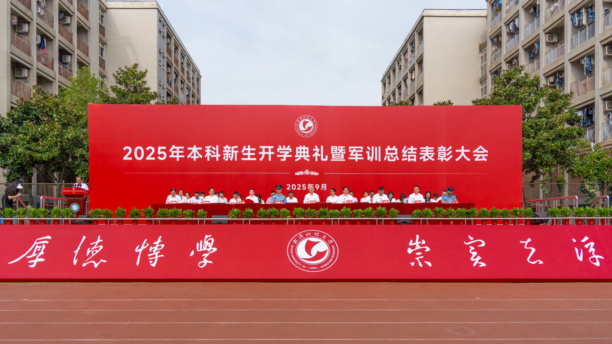 武科大网讯(记者徐湘颖 通讯员余姿逸) 金桂溢香满校园,红旗猎猎映初心。9月29日上午,武汉科技大学2025年本科新生军训总结表彰大会在黄家湖校区南区田径运动场举行。6679名本科新生身着迷彩、整齐列队,以昂扬姿态汇报为期两周的军训成果。