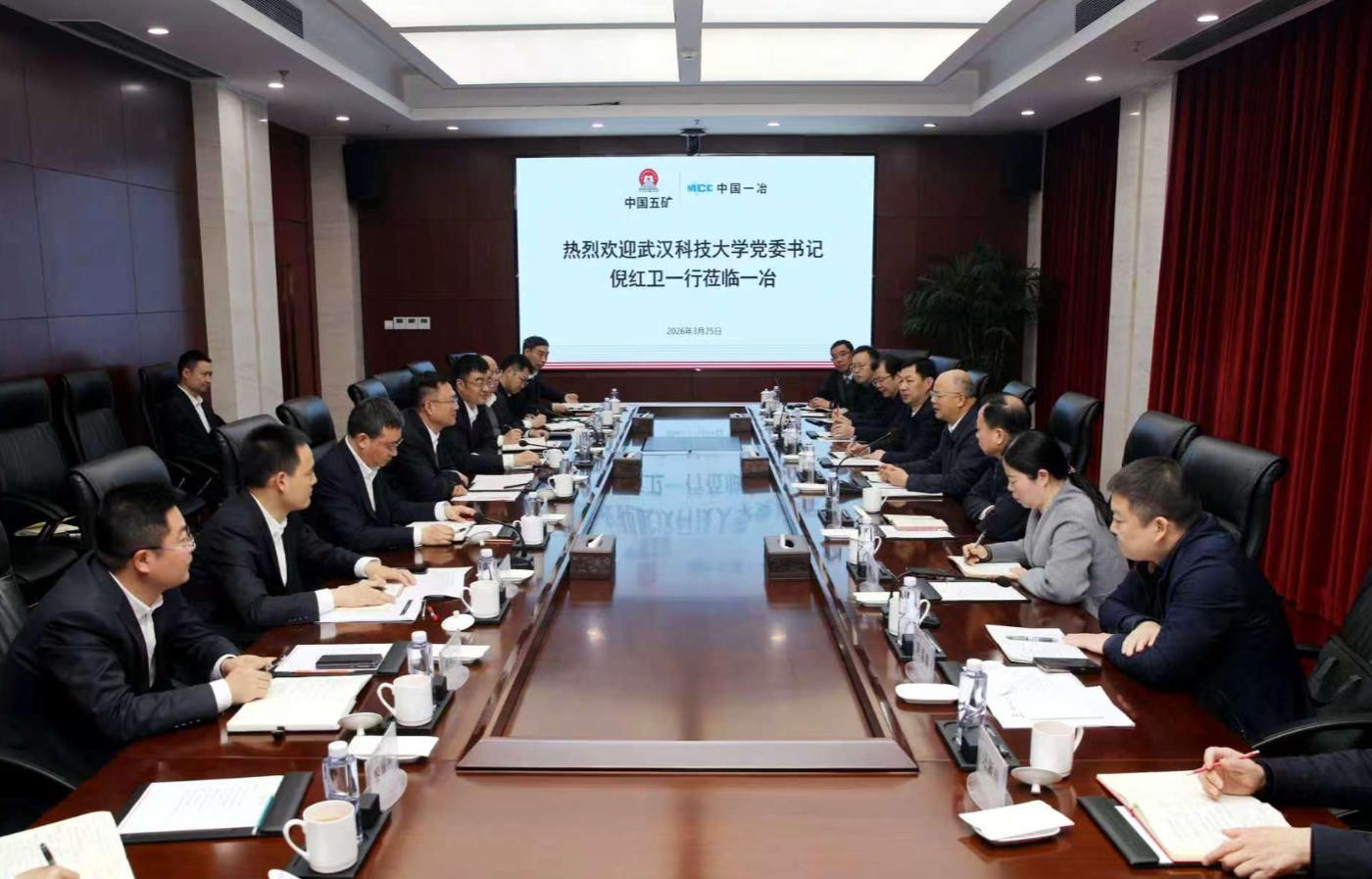 近日,武汉科技大学党委书记倪红卫、校长吕勇带队走访中国宝武钢铁集团有限公司、中国五矿集团有限公司的多家子公司,全面落实共建协议,深化协同发展,进一步推动学校一流学科建设与企业科技创新的深度融合。